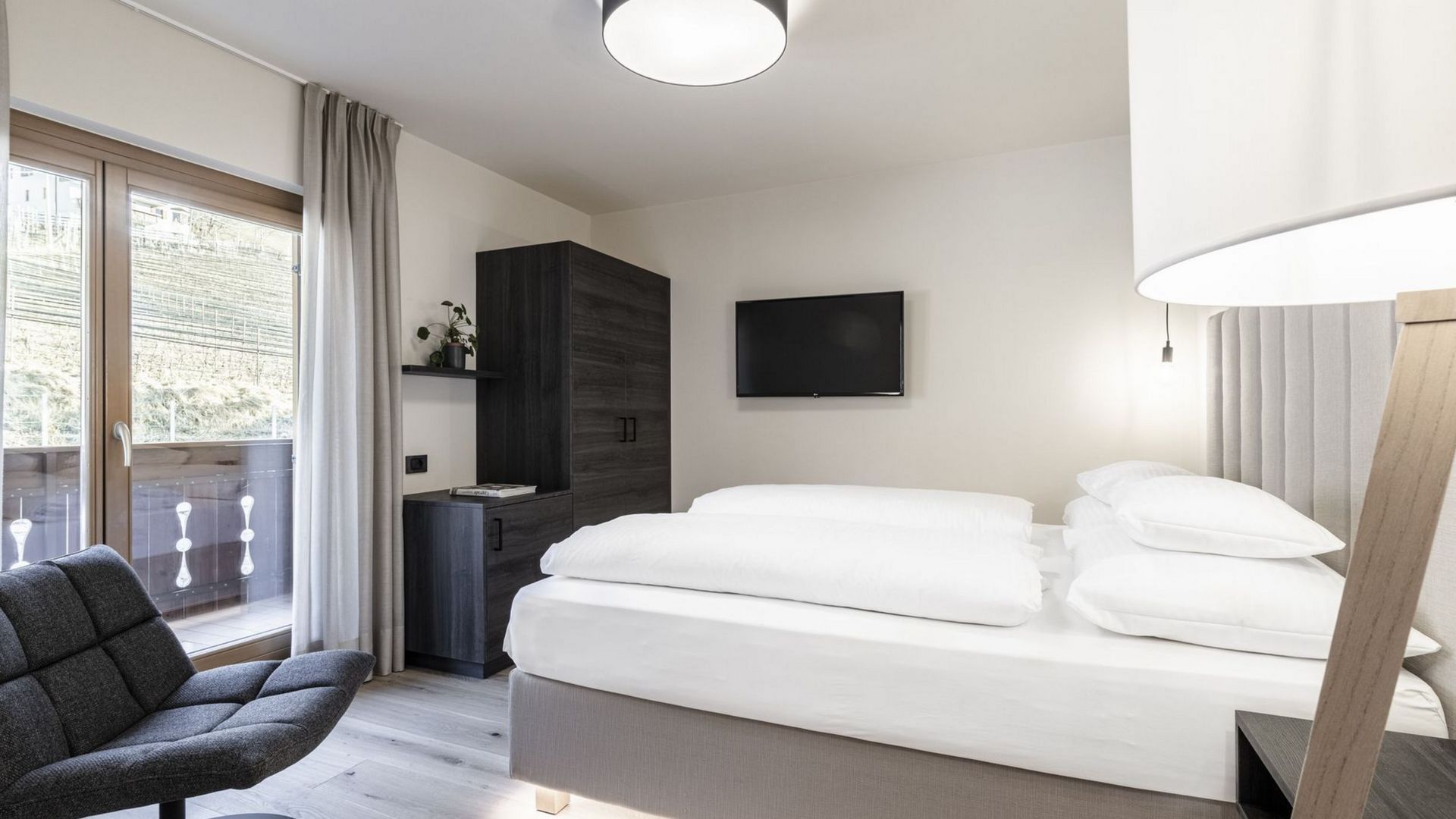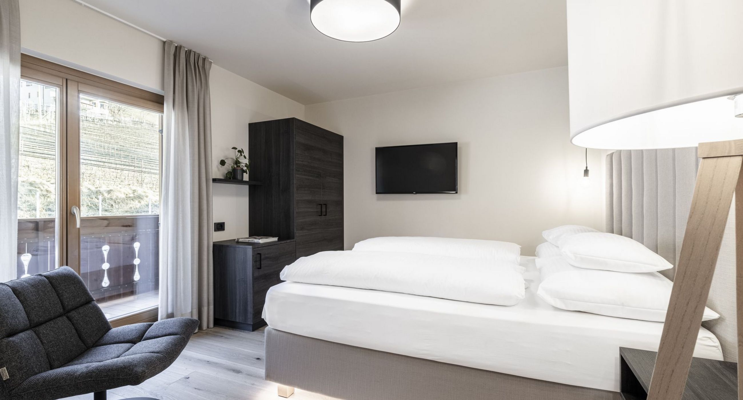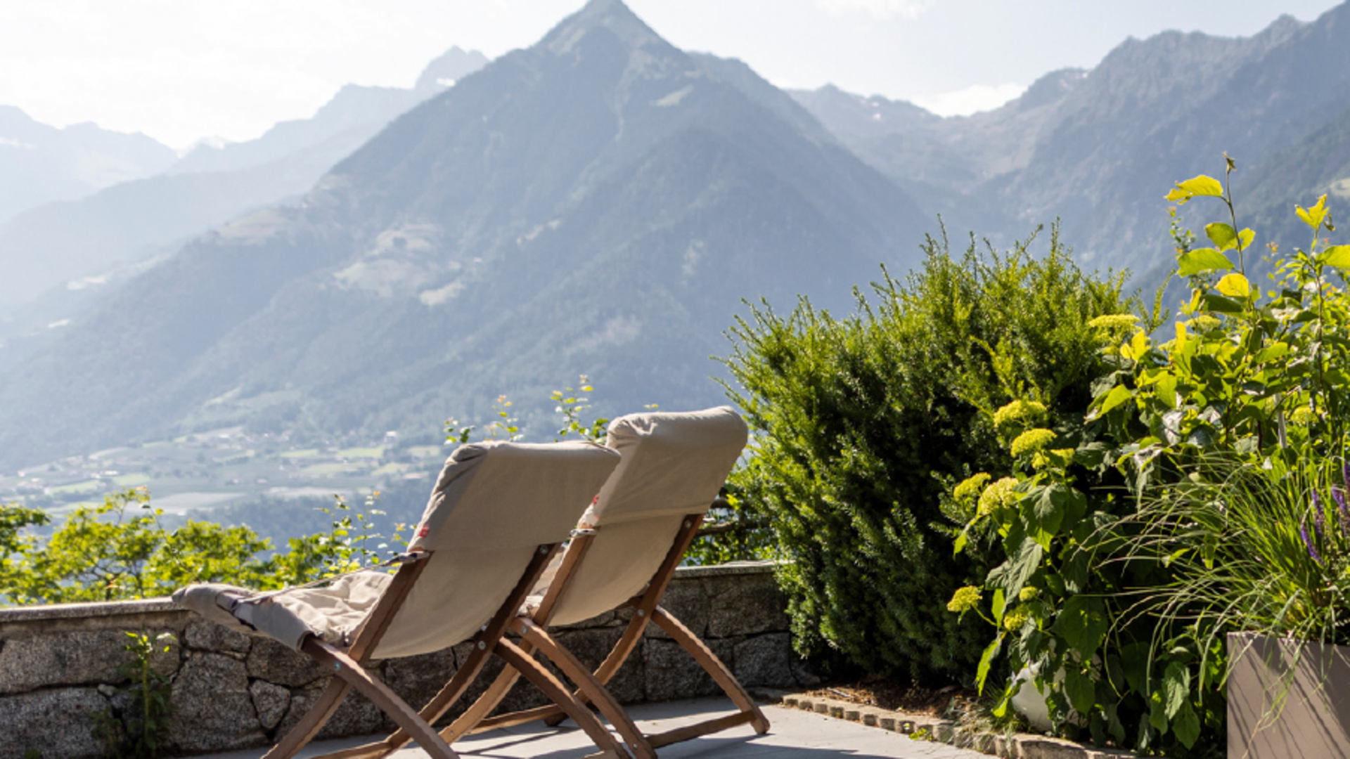 Unsere Design-Apartments öffnen sich mit Balkon oder Terrasse zur weiten Landschaft des Meraner Landes.